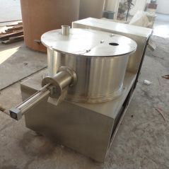 本机是通过设置旋转离心盘、鼓风机、气动喷枪,将湿颗粒制成美丽的球丸。将前道工序做成的湿颗粒投入旋转离心盘内,启动鼓风机后再将旋转离心盘启动,使湿颗粒受到环隙空气浮力、旋转离心力、自身重力作用,呈环周绳股状运动,从而形成真球度极高的球丸。